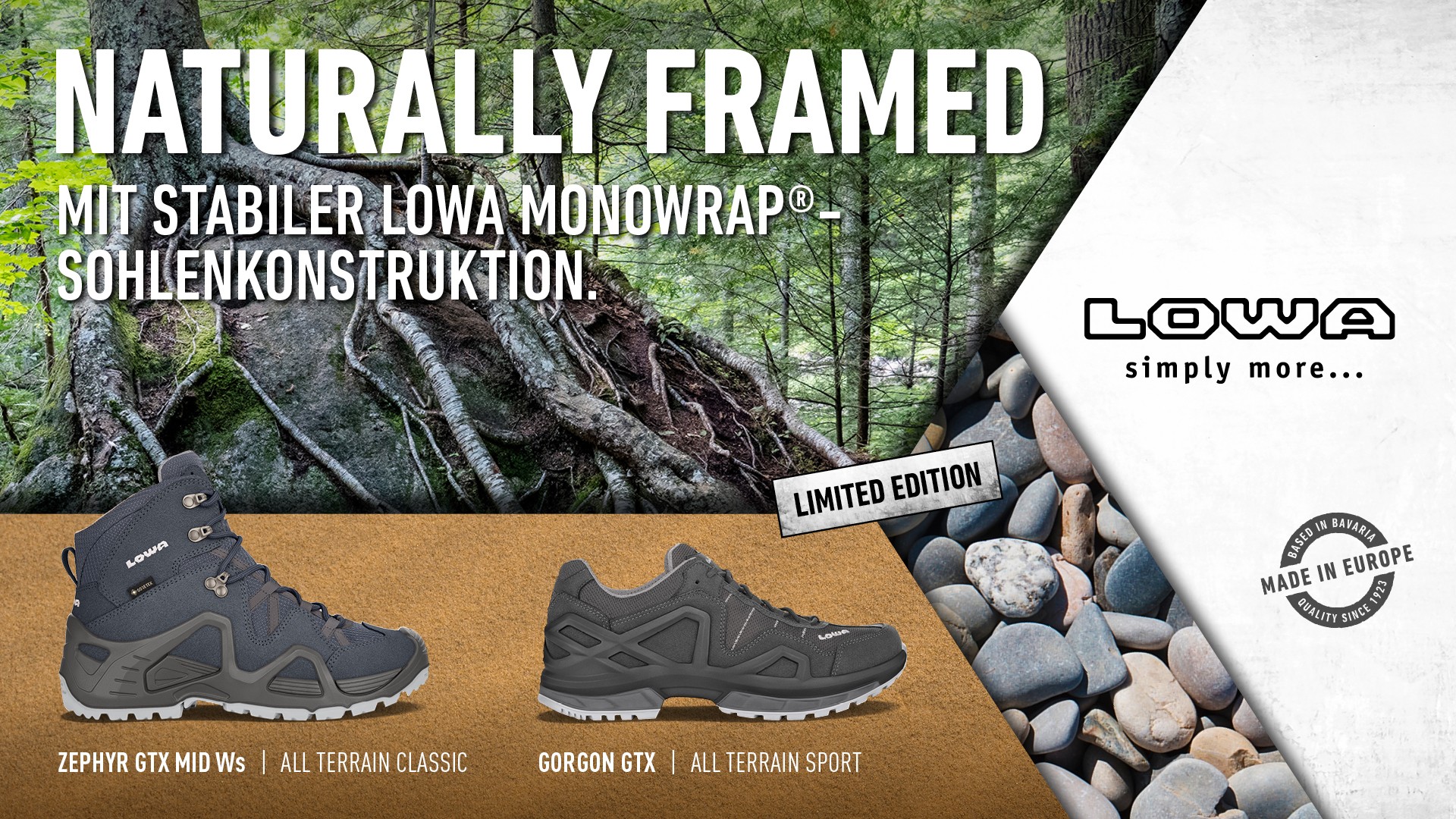 Optimaler Halt und hoher Komfort sind die Paradedisziplinen des GORGON GTX Ws. Der Multifunktionsschuh sorgt durch den weit hochgezogenen LOWA-MONOWRAP®-Rahmen für eine perfekte Führung des Fußes und bietet damit die perfekte Grundlage für leichte Wander- oder Speed-Hiking-Touren.