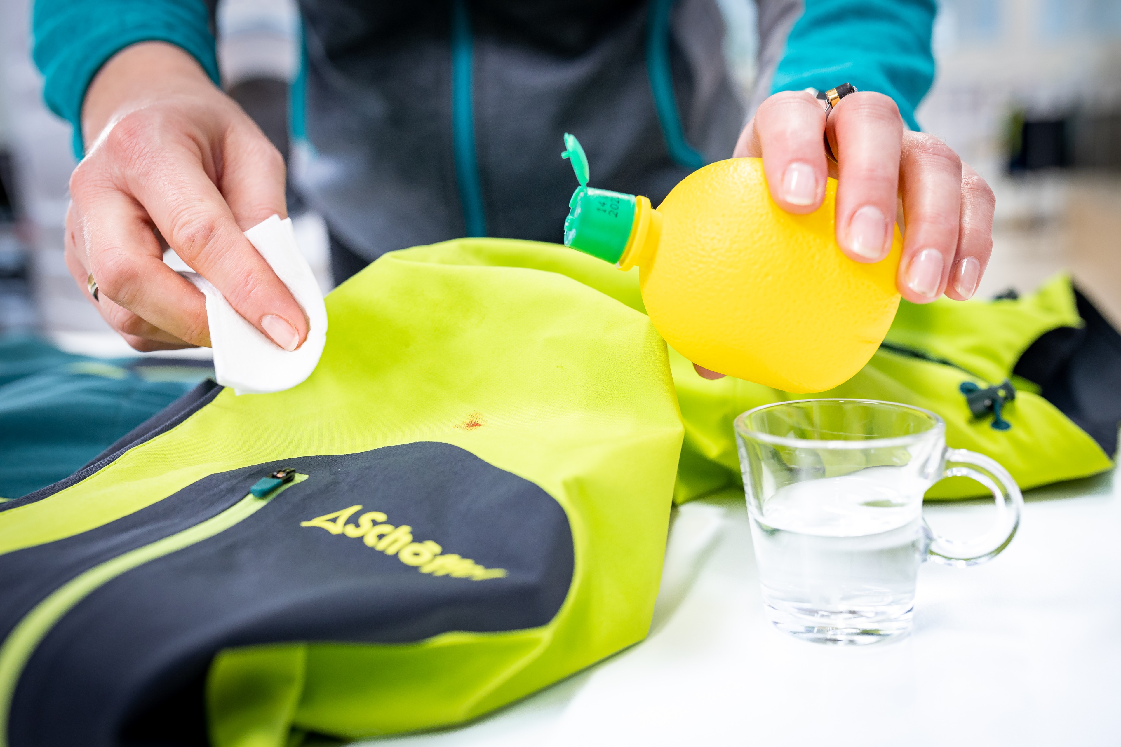 Einmal nicht aufgepasst und schon hast Du einen Fleck auf Deiner Outdoorjacke oder einem anderen Teil Deiner funktionellen Ausrüstung. Jetzt solltest Du schnell handeln – oder besser: behandeln. „Wichtig ist, dass Du hartnäckige Flecken vor dem Waschen vorbehandelst, damit die Verschmutzung nicht noch tiefer ins Gewebe eindringt. Reibe und bürste nicht zu stark an den Flecken herum, da auch das die Verunreinigung tiefer ins Gewebe dringen lässt.“, rät Ludwig Schuster. Je nachdem, woher Dein Fleck stammt, benötigt er eine entsprechende Behandlung. Schöffel-Service-Factory-Leiter Schuster sagt Dir, wie Du welche Flecken aus Deinen Outdoor-Klamotten rausbekommst: