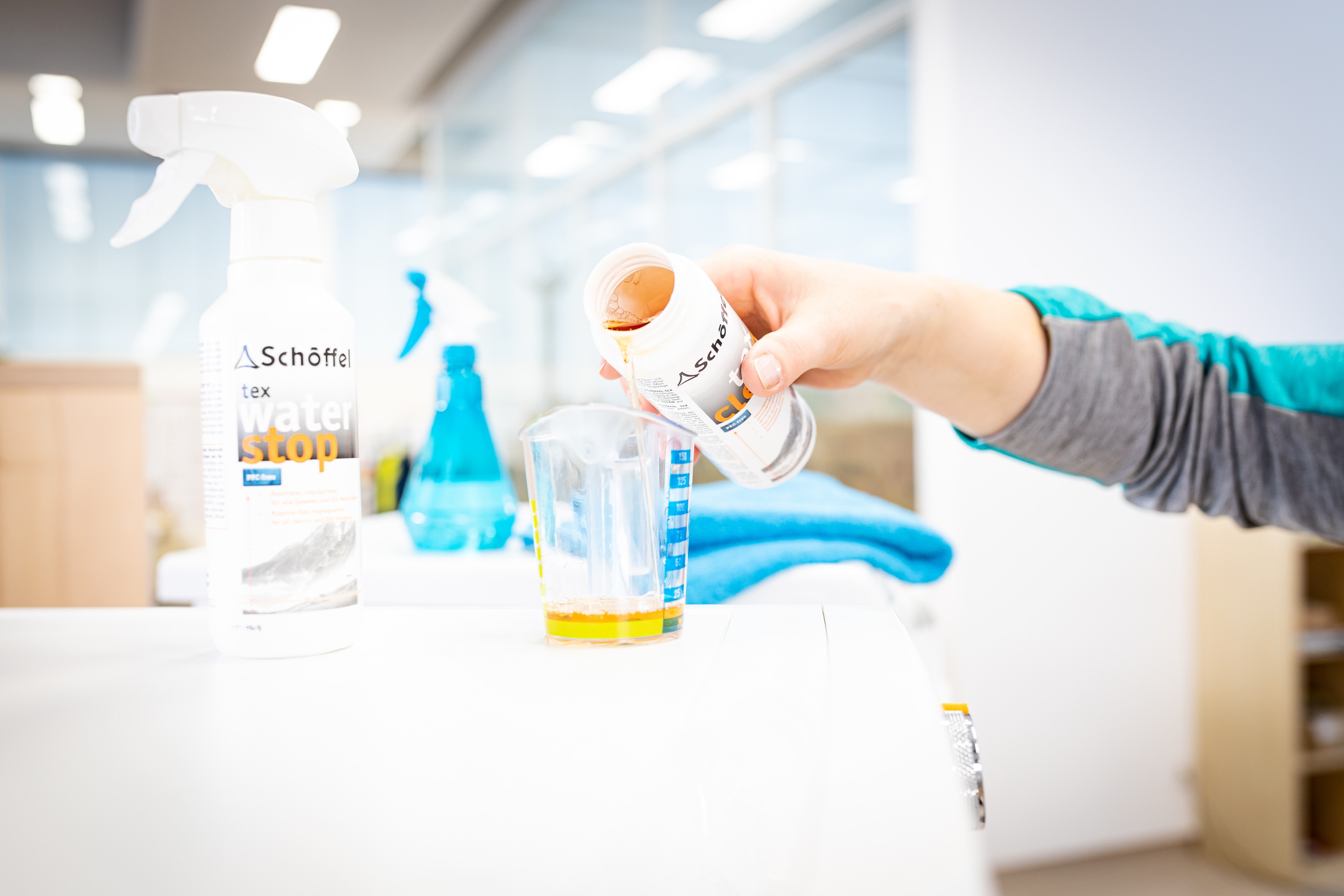 Als Waschmittel für die Outdoorbekleidung von Schöffel empfiehlt der Leiter der Service-Factory die Produkte, die in unseren Schöffel-LOWA Stores erhältlich sind. Es sorgt nicht nur dafür, dass Schmutz und Schweiß ausgewaschen werden, sondern auch, dass die DWR / Imprägnierung (dauerhaft wasserabweisende Imprägnierung) des Stoffs geschont wird. Das Waschmittel unterstützt den Erhalt der Funktionalität Deiner Outdoorjacken, Outdoorhosen und Funktionsshirts optimal. Bei allen Herstellern sind die Waschmittel auf weitere Pflegeprodukte wie Imprägniermittel abgestimmt.