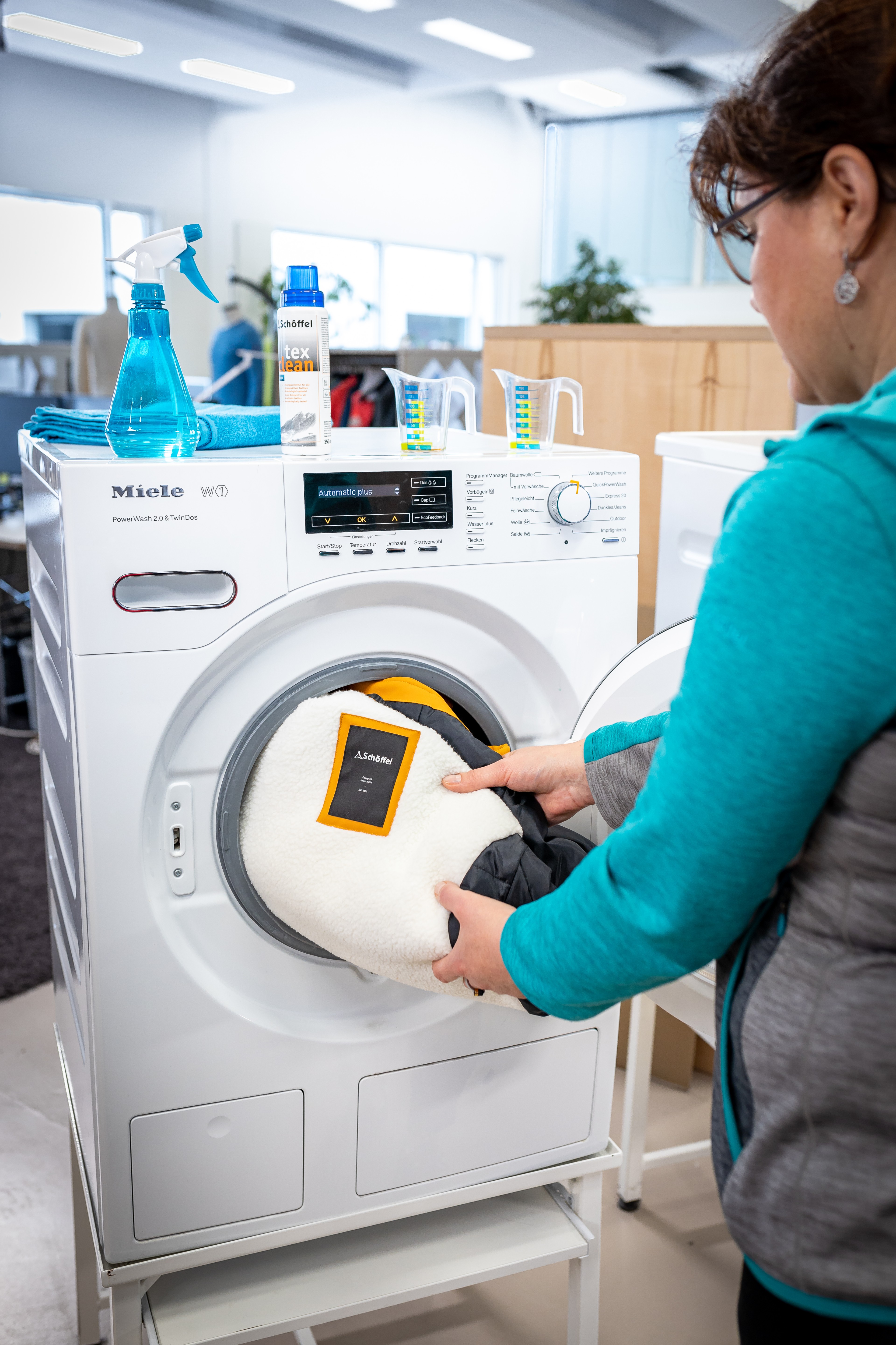 „Bevor Du mit dem Waschen Deiner Schöffel-Bekleidung starten kannst, solltest Du das Pflegeetikett sorgfältig lesen. Dieses gibt Dir Auskunft über die zulässige Behandlungsart, um das Material zu schützen.“, rät Ludwig Schuster von der Schöffel-Service-Factory.